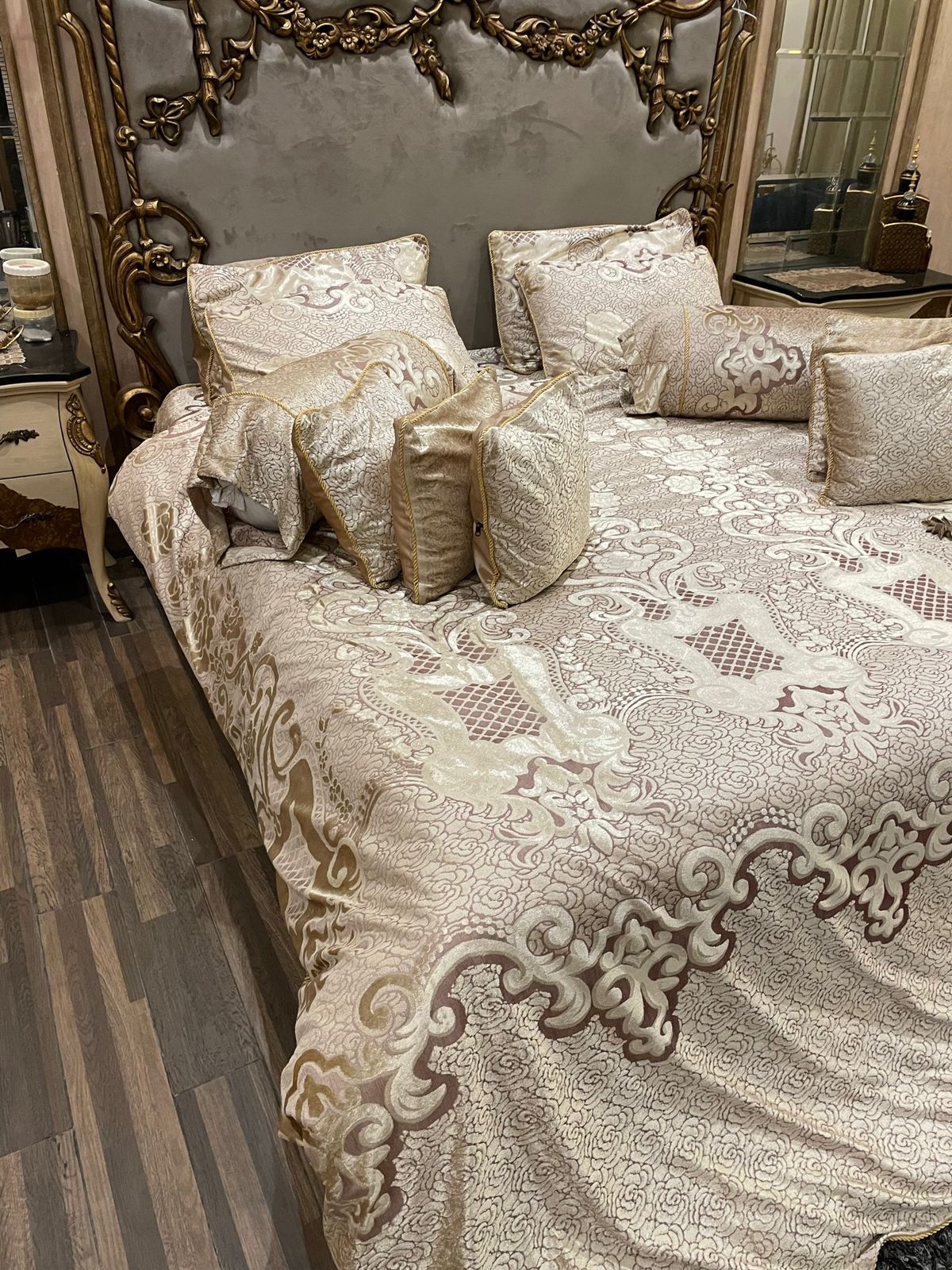 - 1 King Size Bedsheet: 90"x107" with a 15" frill; crafted with a pure cotton backside for added softness and durability.