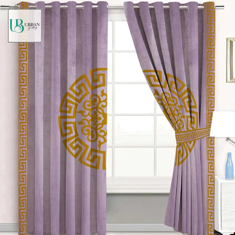 2 Pieces Premium splendid velvet curtain Panels & 2 Belts (Purple/Gold)