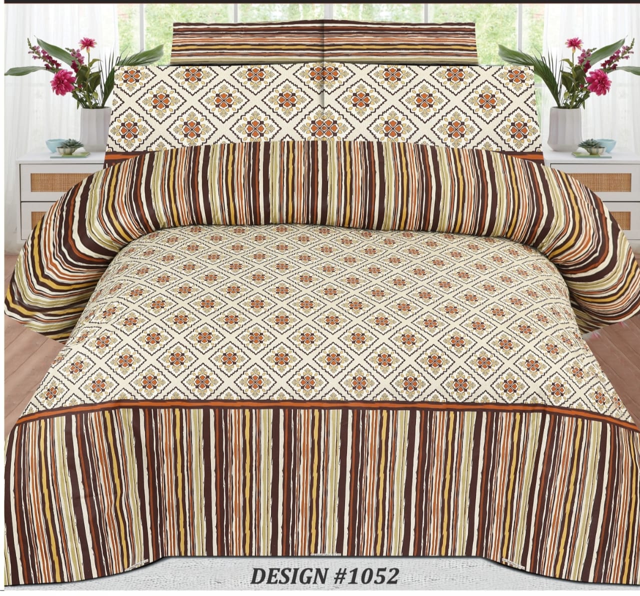 Too give a vibrant and attractive look to your bedrom. This beautiful polycotton bedsheets are designed using eye catching colour patterns and alluring designs.